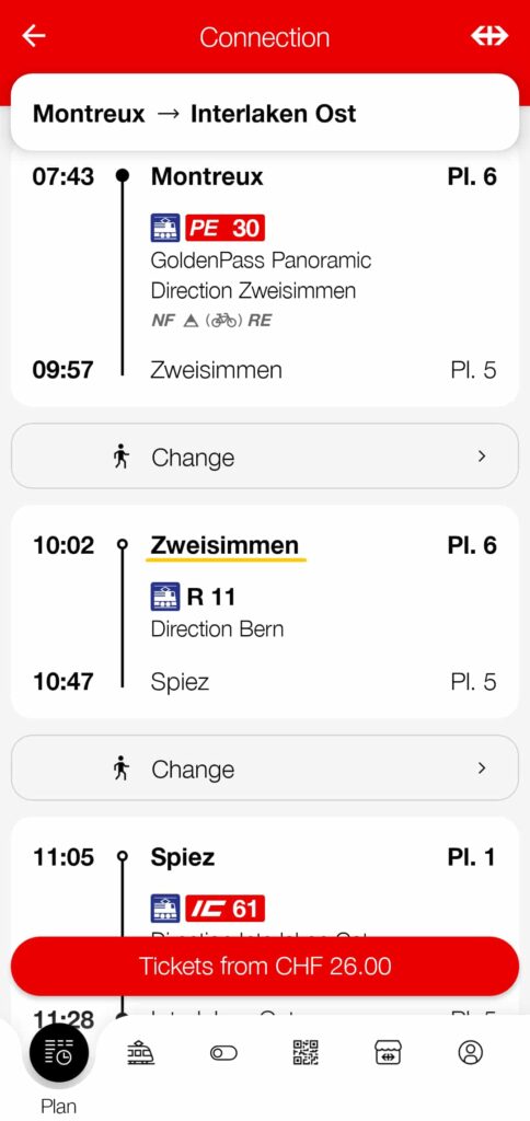 | モントルー発 → | ツヴァイジンメン着 |
