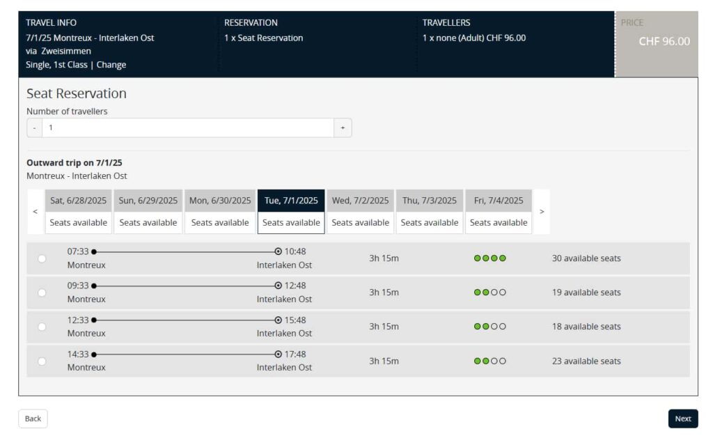 東行き モントルー → インターラーケン・オスト
